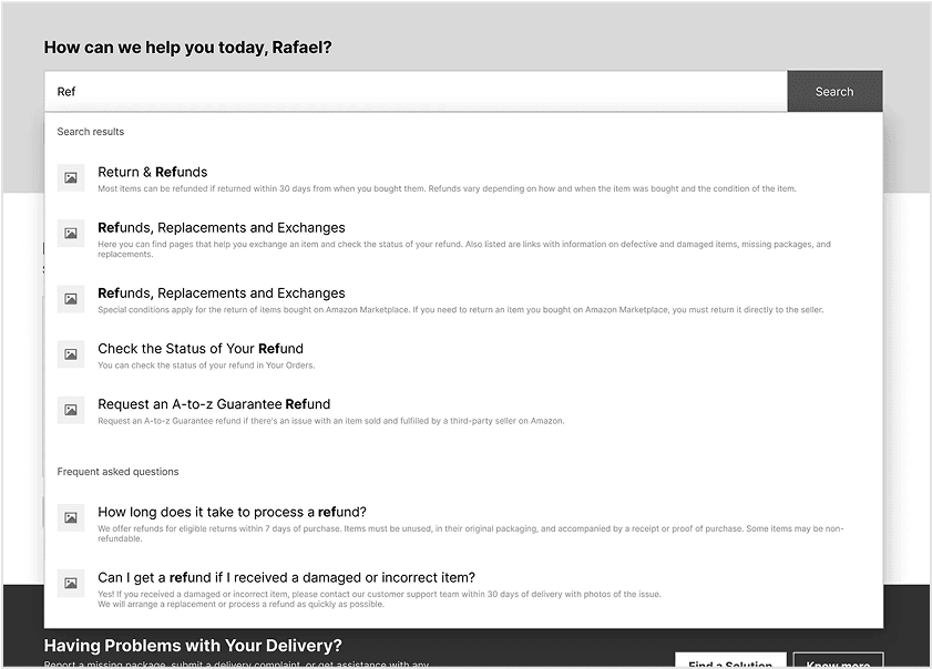 These changes are expected to improve user’s understanding of the delivery process, provide another way to leave feedback of the deliveries, and offer a faster and more intuitive way to access the Amazon chatbot or live agent chat. Additionally, repositioning the search bar, improving predictive search capabilities, and refining how search results are shown may help users find solutions more quickly and efficiently.