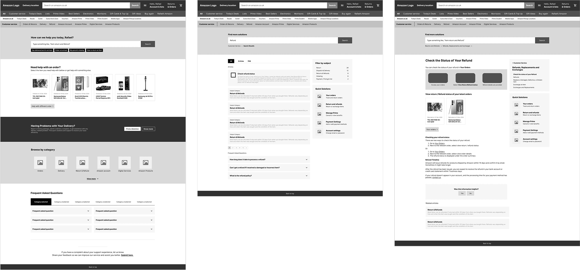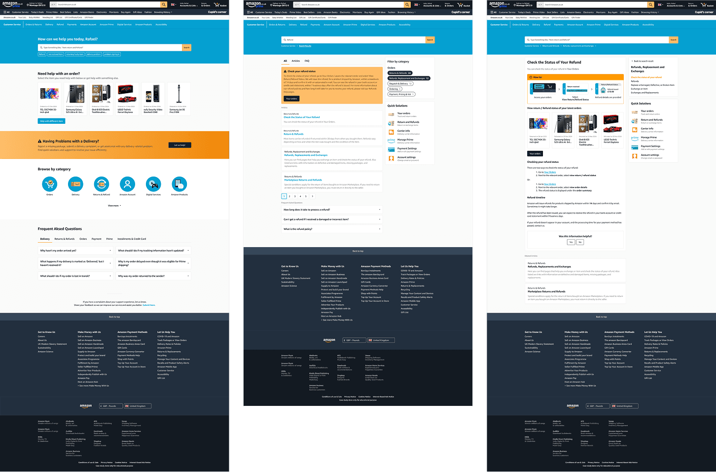 A well-structured support system is essential for customer satisfaction, reducing friction and frustration when issues arise. With millions of daily users, Amazon’s support page serves as a gateway to problem resolution, but how effective it is? This project will analyze its navigation, usability and efficiency, using competitor analysis and desk research to identify market trends, user pain points, opportunities for improvement. By refining the support experience, Amazon can reinforce its reputation as a truly customer-centric company, ensuring that even post-purchase interactions are as seamless as the shopping experience itself.